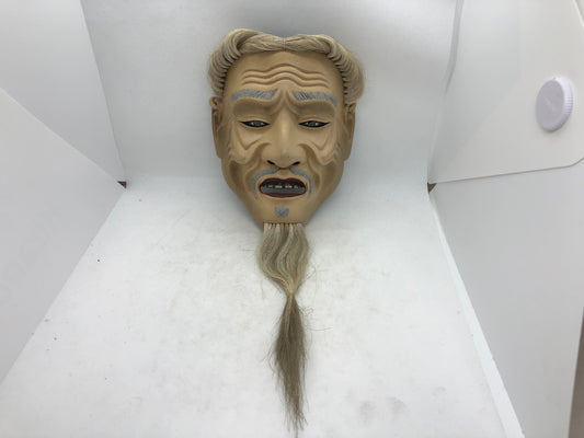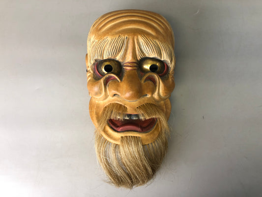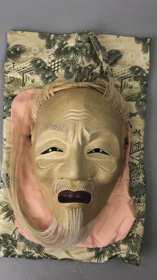 Y7359 NOH MASK wood carving Old man bag Japan antique traditional drama omen men
