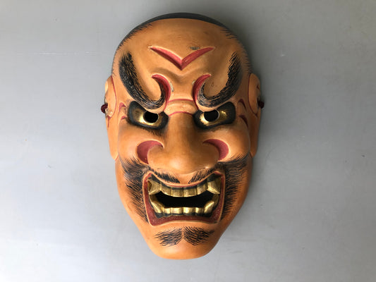 Y8803 NOH MASK wood carving Kobeshimi demon oni Japan antique omen dance drama