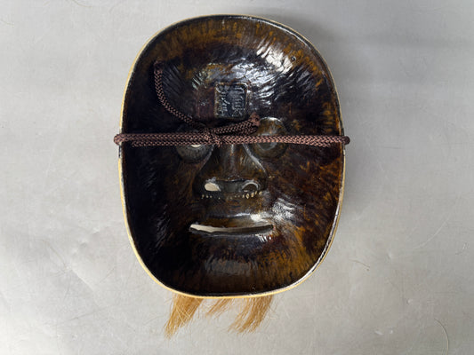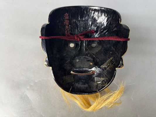 Y8916 NOH MASK wood carving Dorokurohige signed Japan antique omen dance drama