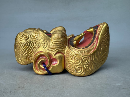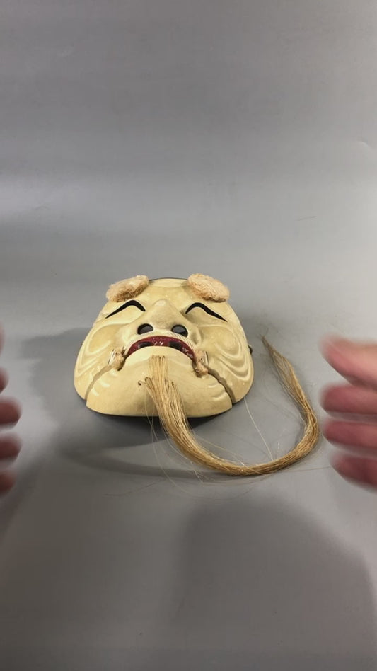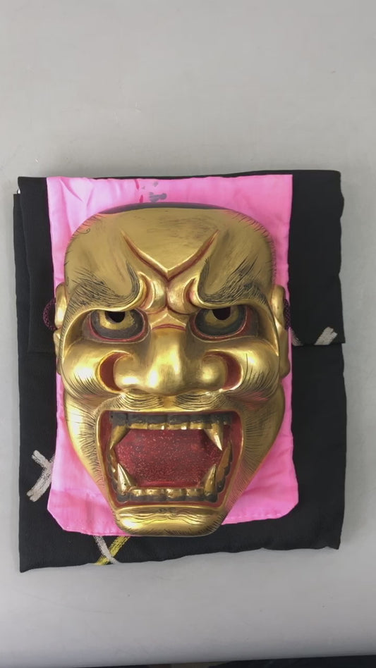 Y6688 [VIDEO] NOH MASK wood carving Kojishi bag Japan antique omen interior dance drama