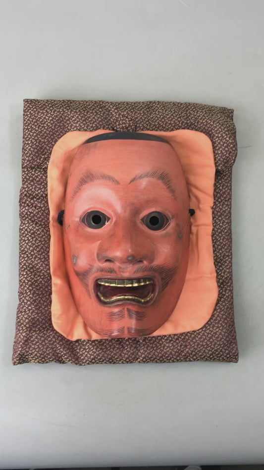 Y8202 NOH MASK wood carving red face Japan antique dance drama traditional omen