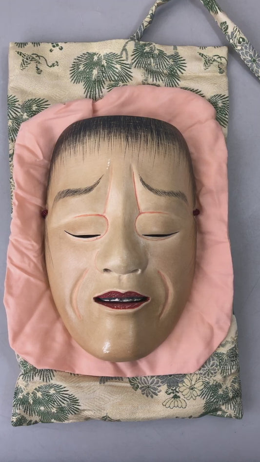 Y9499 NOH MASK wooden Ko-omote young girl box Japan antique dance drama omen men
