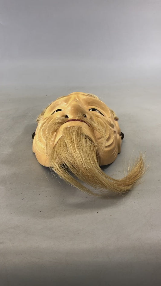 Y6223 [VIDEO] NOH MASK wood carving signed Koomote Japan antique omen men dance drama