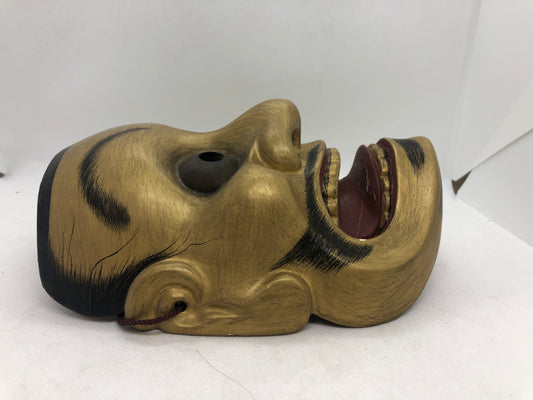 Y8913 NOH MASK wood carving Daiakujo signed Japan antique omen men dance drama