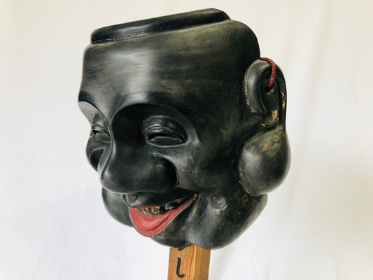 Y4911 NOH MASK wood carving Daikoku Japan antique omen dance drama vintage