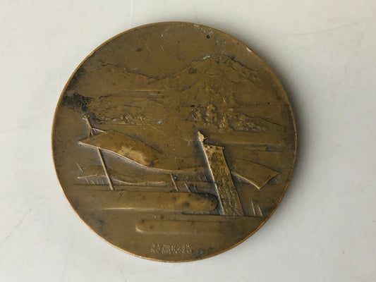 Y7672 KUNSHO Bronze medal 1935 Bushi Samurai Japan antique vintage decoration