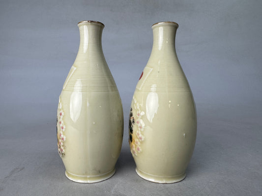 Y8926 Imperial Japan Army 2 Tokkuri Sake bottles ceramic Japan WW2 vintage