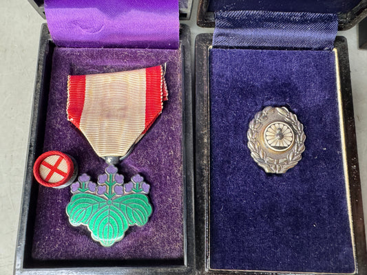 Y9072 KUNSHO 2 Red Cross medals box Japanese military Imperial Japan army