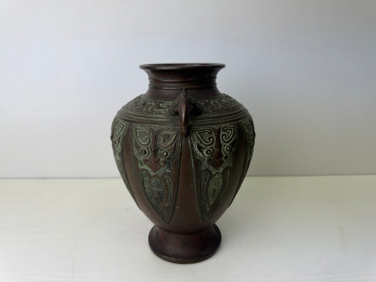 Y9180 Imperial Japan Army Copper commemorative flower vase signed Japanese WW2