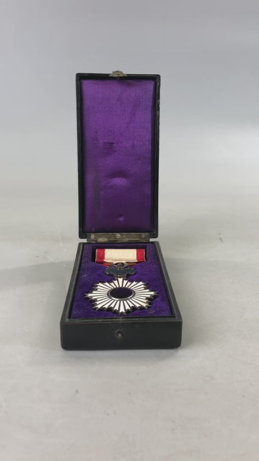Y7033 [VIDEO] KUNSHO Order of the Rising Sun 6th Class box Japan antique military award