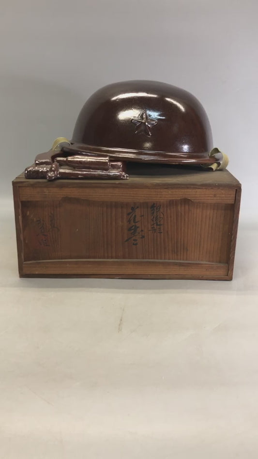 Y6400 [VIDEO] Imperial Japan Army Iron Helmet figurine military Japan WW2 vintage figure