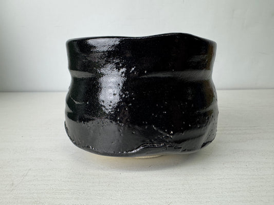 Y9975 CHAWAN Raku-ware black bowl signed box Ryonyu Japan antique tea ceremony