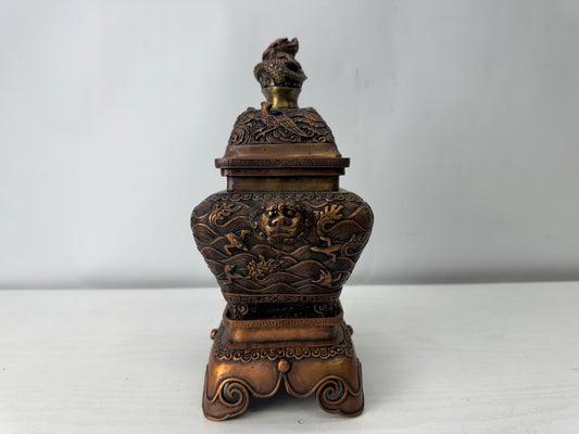Y10018 KOURO copper Incense Burner signed China antique fragrance aromatherapy