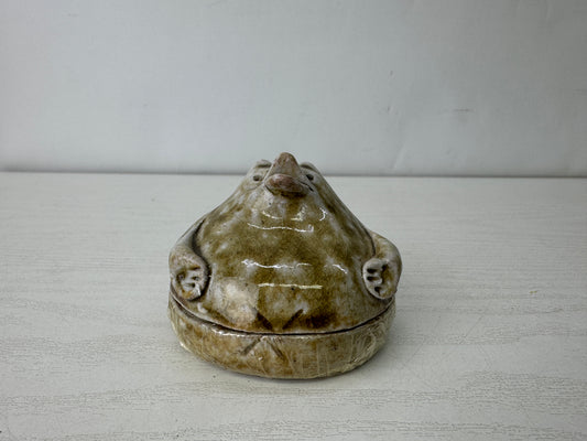 Y10098 OKIMONO Shigaraki-ware Raccoon dog Ink pad case signed box Japan antique
