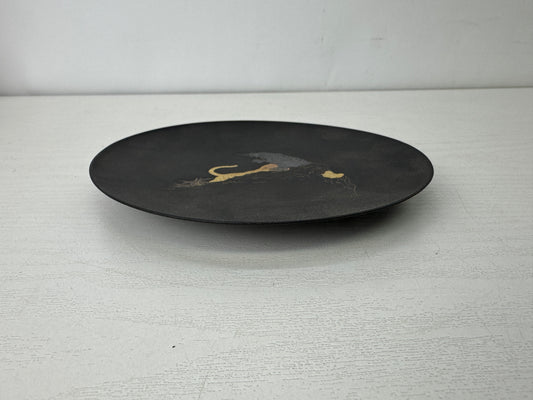 Y10109 DISH Tiger gold silver inlay Decorative plate metal Japan antique decor