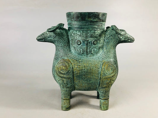 Y7139 VESSEL Chinese copperware twin sheep China antique vintage container pot