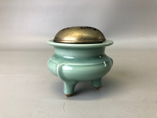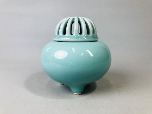 Y7361 KOURO Celadon signed cover Japan antique fragrance aroma incense burner