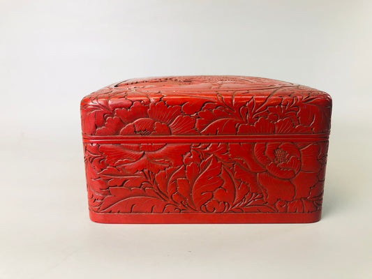 Y6975 「VIDEO] BOX Kamakura carving accessory case flower bird Japan antique storage