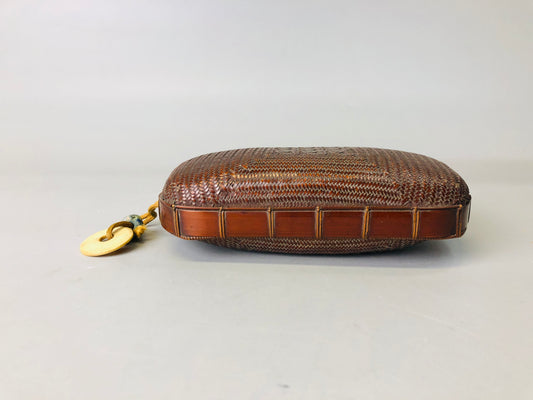 Y7542 Bamboo Woven Basket Suzuri case deformed type Japan antique container