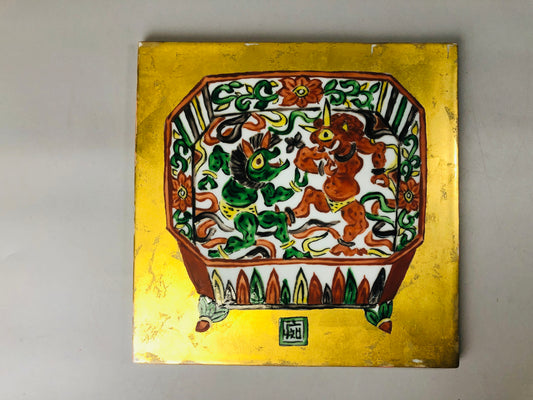 Y7321 OKIMONO Arita-ware ceramic plate color picture signed box Japan antique