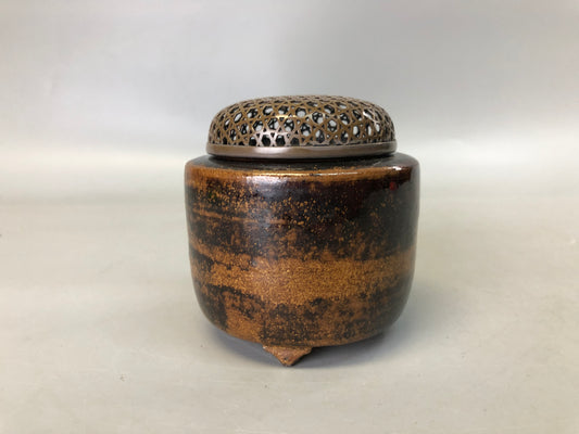 Y7356 KOURO Seto-ware silver cover signed Japan antique fragrance incense burner