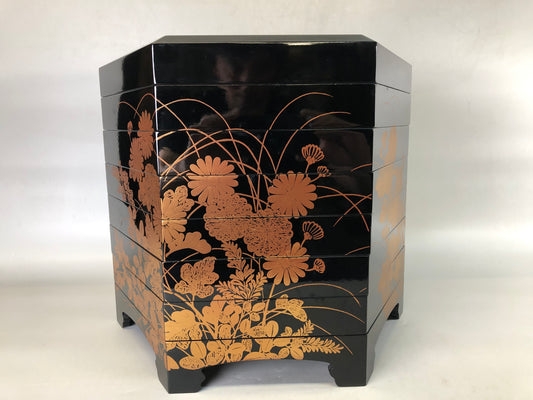 Y7299 BOX Crane Makie accessory case stand Japan antique container vintage