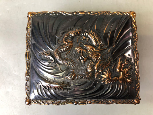 Y7593 BOX copper accessory case embossed Dragon Japan antique small container