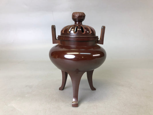 Y7138 KOURO Copper Lion knob signed Japan antique fragrance incense burner aroma