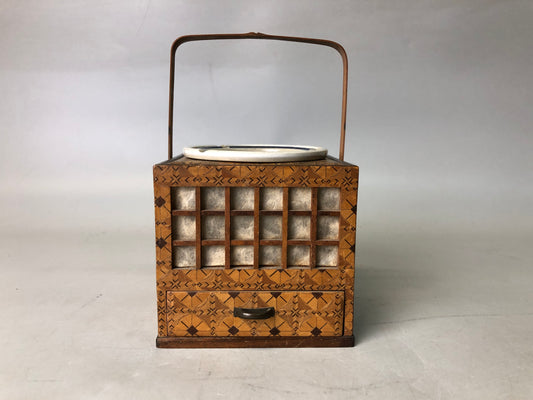 Y7708 ASHTRAY Hakone woodwork handle parquet Japan antique collectible cigarette
