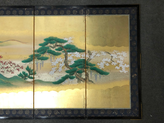 Y7803 BYOUBU 6 panel folding screen pair signed box Japan antique decor interior