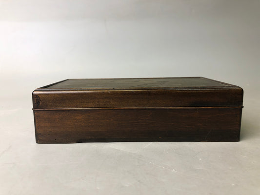 Y7217 BOX Kamakura carving letter case signed landscape Japan antique stationery
