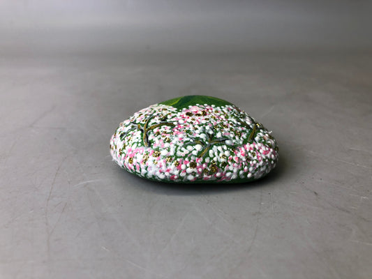 Y7826 OKIMONO Paperweight box cherry blossoms painting stationery Japan antique