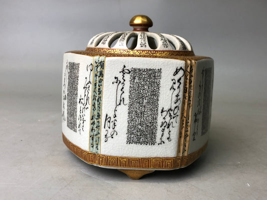 Y7827 KOURO Kutani-ware fine print signed box Japan antique Incense Burner aroma