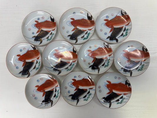 Y9935 DISH Seto-ware Carp plate set of 10 color picture Japan antique tableware
