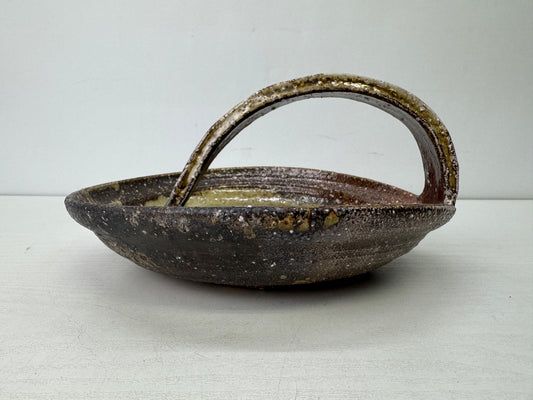 Y9837 DISH Shigaraki-ware handle bowl signed box Japan antique tableware plate