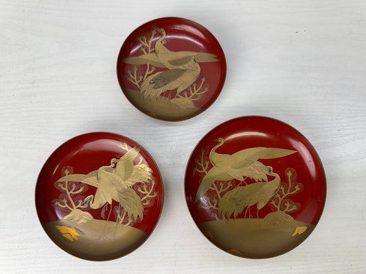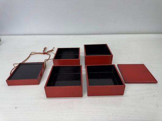 Y9839 CHAWAN 3-tiered Sake cup sakazuki vermilion lacquer box Japan antique