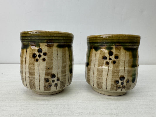 Y9901 YUNOMI Oribe-ware teacups set of 2 signed box Japan antique sencha tea cup
