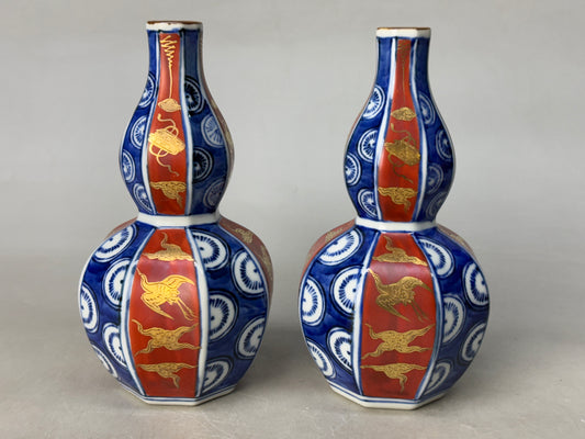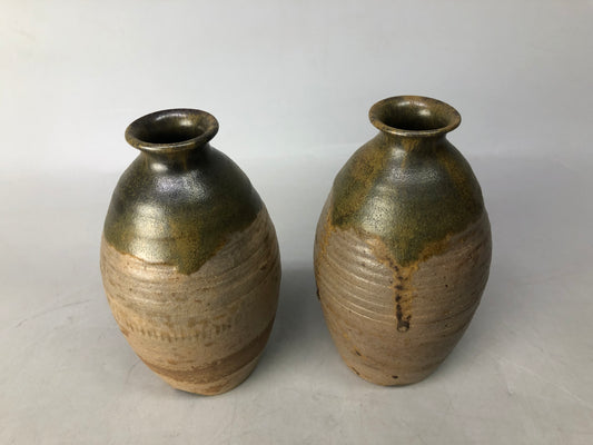 Y8461 CHOUSHI Oribe-ware Tokkuri Sake bottle set of 2 signed box Japan antique