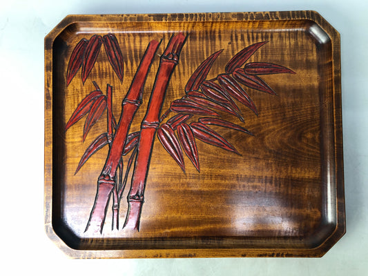 Y8464 TRAY wooden OBON OZEN bamboo carving Japan antique serving serveware