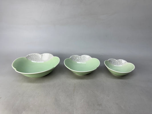Y8556 CHAWAN Kutani-ware triple bowl signed Japan antique pottery tableware
