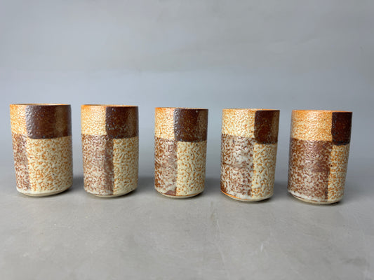 Y8539 YUNOMI Shino-ware teacup tea cup set of 5 signed box Japan antique Sencha