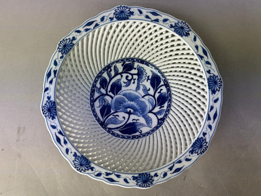 Y8674 CHAWAN Arita-ware confectionery bowl openwork signed box Japan antique