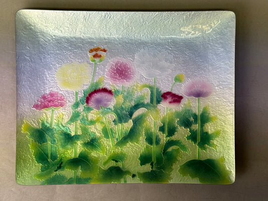 Y8797 DISH Cloisonne floral motif decorative plate signed box Japan antique