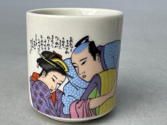 Y8843 CHAWAN Kutani-ware sake cup set of 5 box Shunga Japan antique tableware