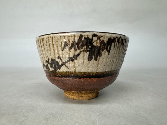 Y9191 YUNOMI Mino-ware iron painting teacup signed box Japan antique Sencha tea