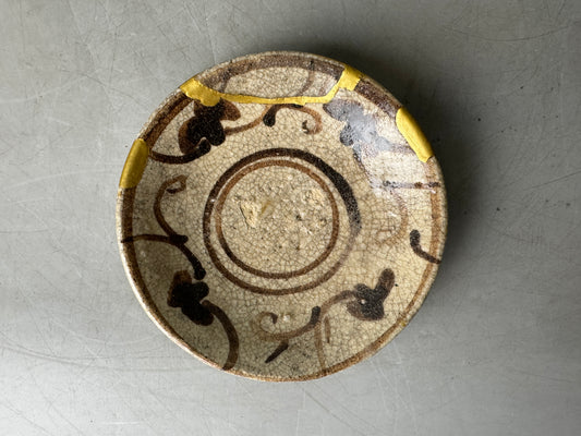 Y9037 DISH Oribe-ware small plate kintsugi Japan antique tableware kitchen