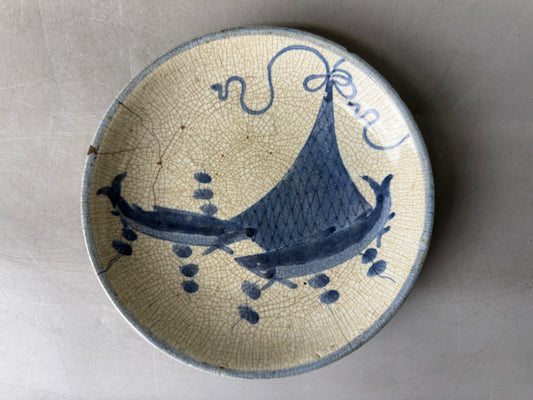 Y9038 DISH Koimari Imari-ware plate fish scratches Japan antique tableware