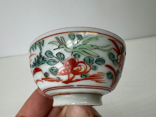 Y9114 CHAWAN Kyo-ware sake cup sakazuki kintsugi box Japan antique tableware