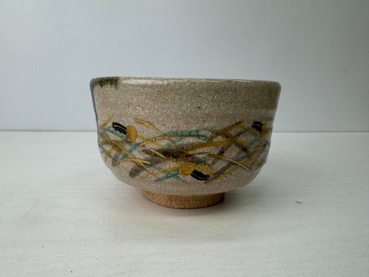 Y9160 CHAWAN Kyo-ware bowl Firefly signed box Japan antique tea ceremony pottery