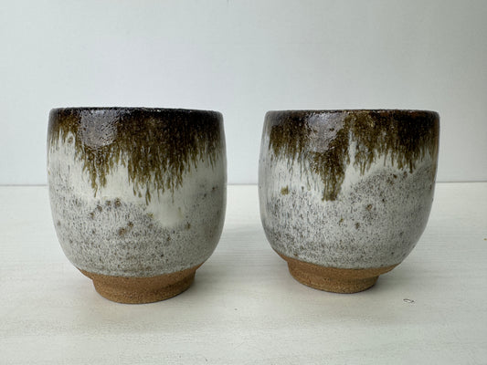 Y9215 YUNOMI Karatsu-ware teacup set of 2 signed box Japan antique Sencha tea